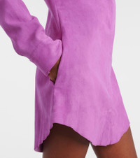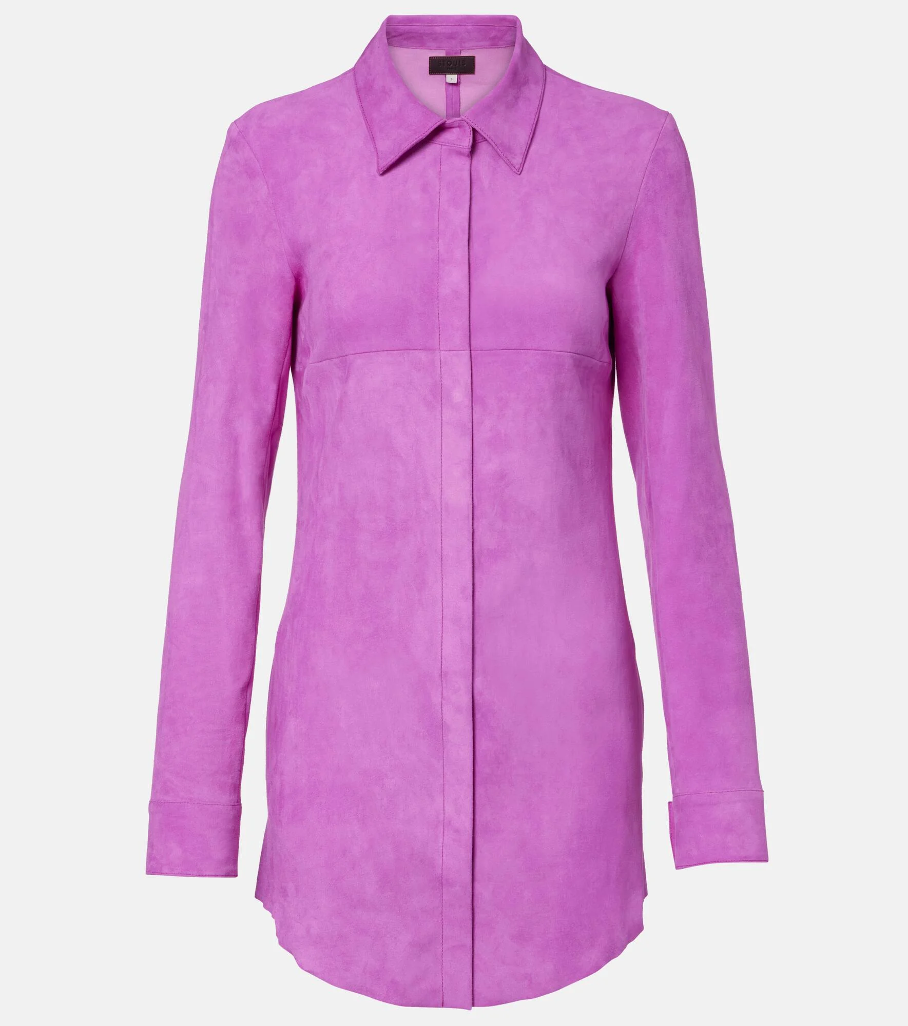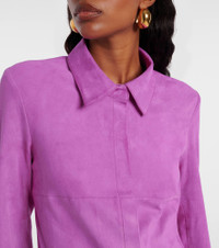 The Geraldine dress from Stouls is made from supple and stretchy suede, a signature material that's celebrated for its premium quality and machine-washable properties. This mini-length design showcases classic shirting details and side pockets. Product Details - Material: 100% lamb leather (suede) - Care instructions: specialist clean - Made in Portugal - Designer color name: Gaga - Item color: pink - Material II: 97% cotton, 2.4% lyocell, 0.6% elastane - Pocket lining: 55% viscose, 45% polyester - Collar: classic (Straight point) - Closure: snap-buttoned front - Cuff: buttoned - Pockets: side slit pockets - Includes: dust bag - Item number: P01073615 Size & Fit - True to size - Cinched waist - Stretchy fabric - The model seen in the picture is 178cm-5'10" and wearing a size XS