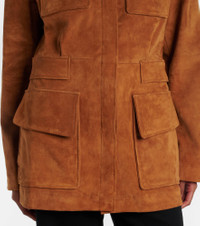 This Leon jacket from Stouls showcases a versatile and durable suede construction. The design is fitted with four patch pockets on the front, and a contrast leather collar for a distinctive touch. Product Details - Material: 100% lamb leather (suede) - Care instructions: specialist clean - Made in Portugal - Designer color name: Coyotte - Item color: brown - Material II: 97% cotton, 2.4% lyocell, 0.6% elastane - Lining: 55% viscose, 45% polyester - Closure: concealed buttoned front - Pockets: flap chest pockets, patch pockets - Vent: single - Includes: garment bag - Item number: P01090419 Size & Fit - True to size - Cinched waist - Non-stretchy fabric - Falls below the hip - slit length 29cm-11.5" - The model seen in the picture is 178cm-5'10" and wearing a size XS