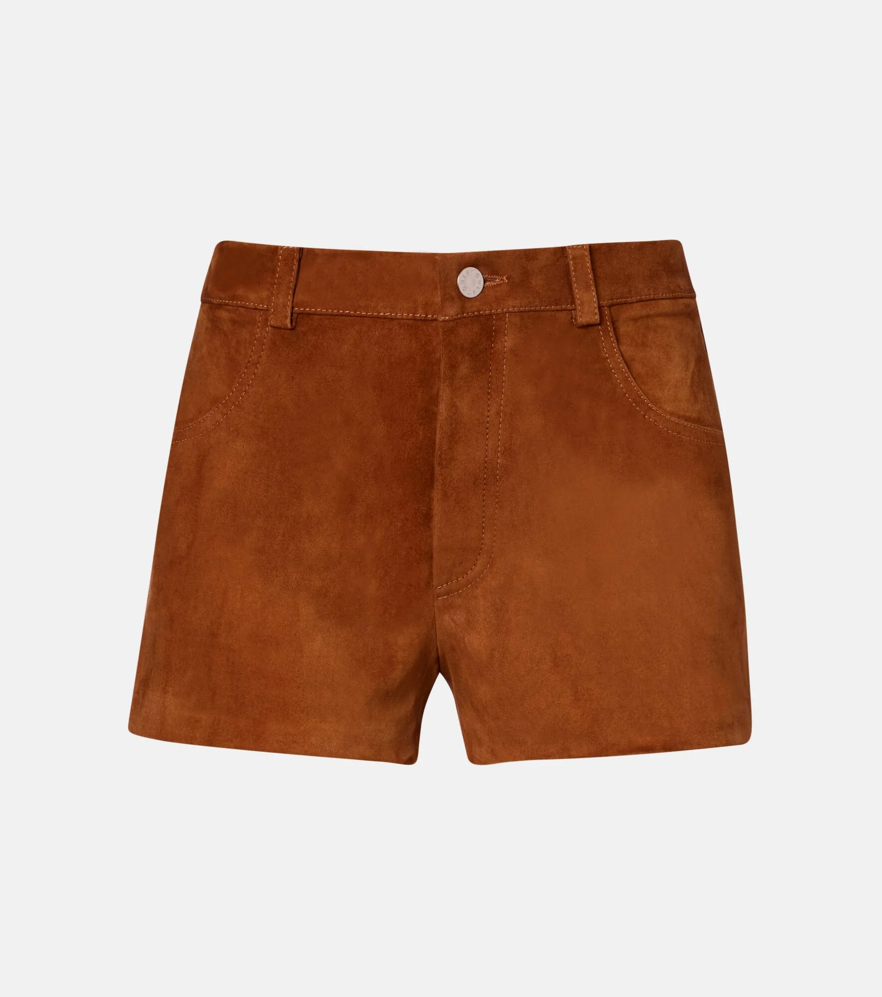 Stouls' supple and stretchy leather is a signature material that's celebrated for its premium quality and machine-washable properties. The Roxie suede shorts feature a classic high-rise silhouette and slant pockets. Product Details - Material: 100% lamb leather (suede) - Care instructions: machine wash at 30 degrees - Made in Portugal - Color: brown - Designer color name: Puma - Item color: brown - Lining: 97% cotton, 2.4% lyocell, 0.6% elastane - Lining II: 54% viscose, 43% nylon, 3% elastane - Hardware color: silver - Closure: zip and button fastening - Belt loops - Pockets: slant pockets - Includes: garment bag - Item number: P01118566 Size & Fit - True to size - Non-stretchy fabric - Slim-leg - The model seen in the picture is 178cm-5'10" and wearing a size XS