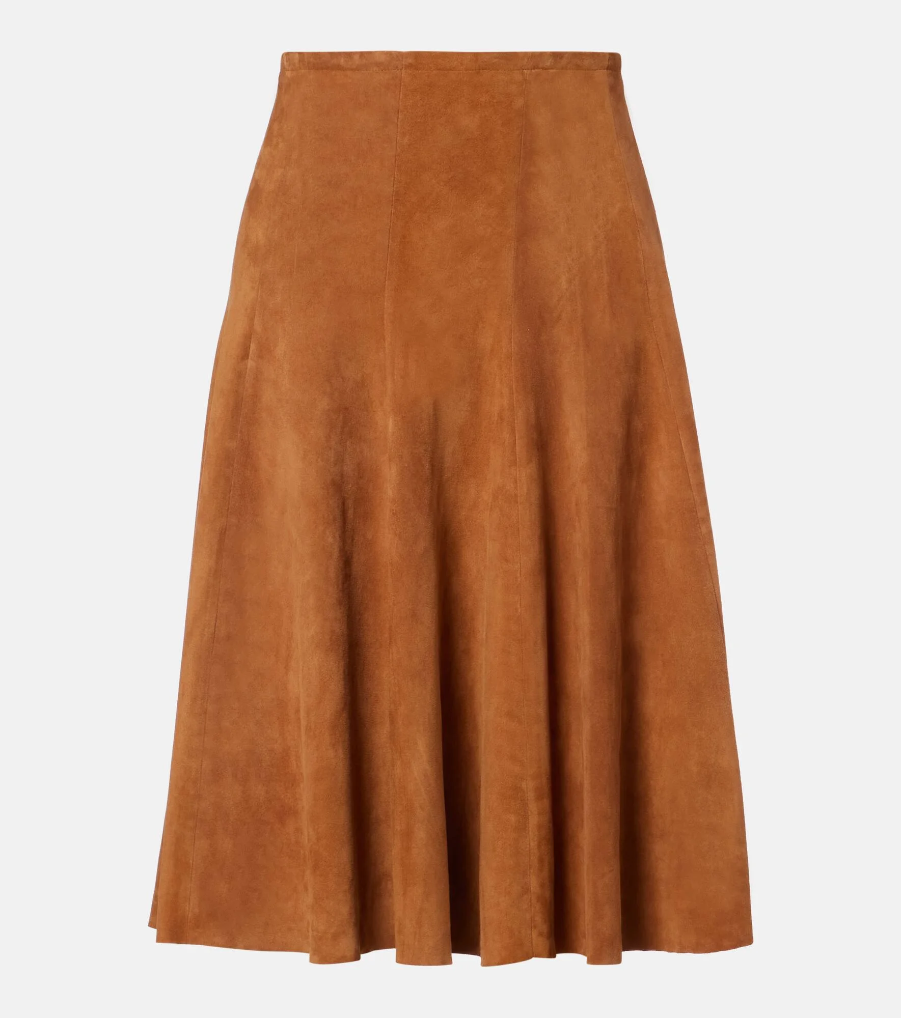 Stouls' supple and stretchy leather is a signature material that's celebrated for its premium quality and machine-washable properties. Made from suede with a brushed finish, the Sabrina midi skirt comes in a classic A-line silhouette. Product Details - Material: 100% lamb leather (suede) - Care instructions: machine wash at 30 degrees - Made in Portugal - Color: brown - Designer color name: Puma - Material II: 97% cotton, 2.4% lyocell, 0.6% elastane - Lining: 95% silk, 5% elastane - Closure: concealed zipped back - Includes: garment bag - Item number: P01118598 Size & Fit - True to size - Stretchy fabric - The model seen in the picture is 178cm-5'10" and wearing a size XS