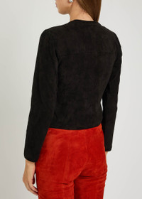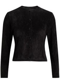 Info & Care Stouls stretch-suede;cardigan Round-neck Button fastenings through front Fabric 1: 100% lambskin; fabric 2: 97% cotton, 2.4% lyocell, 0.6% elastane Machine wash; Size & Fit Length shoulder to hem: 18 inches/ 56cm Midweight Slim;fit, slightly cropped Model is 5'9"/ 175cm and wears a size small