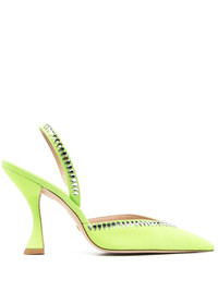 110mm crystal-embellished pumps 110mm crystal-embellished pumps from STUART WEITZMAN featuring neon green, suede trim, glass crystal embellishment, slingback strap, branded leather insole, pointed toe, high sculpted heel and calf leather trim. Imported Composition Sole: Calf Leather 100% Outer: Calf Suede 100% Lining: Calf Leather 100% SIZE & FIT Measurement HEEL 4.3 in(11 cm)