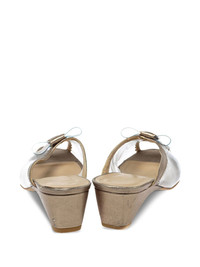 45mm bow-detail wedge sandals Highlights - Gold - Leather wedge heel - Transparent upper - Scalloped trim detail - Bow embellishment - Open toe design - Condition: good. this previously owned and used item is in good condition with minimal signs of use. this may include fading of material or plating and scratches. Imported Composition Outer: PVC 100%, Calf Leather 100% Sole: Calf Leather 100%, Rubber 100% Lining: Calf Leather 100% SIZE & FIT Measurement HEEL 1.77 in(4.5 cm)
