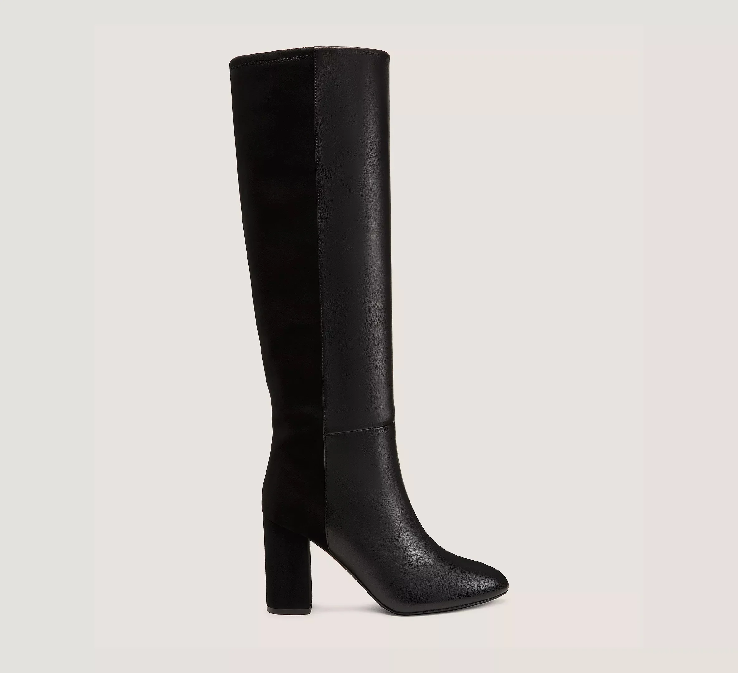 EDITOR'S NOTES The 5050 STRUT BLOCK BOOT takes cues from our iconic 5050 mixed-material boot with its half-leather, half-suede design. Crafted by SW artisans in Spain, this knee-high boot is finished with an 85-mm block heel for a wearable lift that works with practically any outfit. PRODUCT DETAILS MEASUREMENTS Heel Height: 3.4", 85 mm Shaft Height: 15.8", 40 cm Shaft Circumference: 13.8", 35 cm All measurements are made on a size 6 shoe. There may be slight measurement variations based on size. FEATURES Boot Knee-high Block heel Almond toe Pull-on Mixed-material design Crafted by SW artisans in Spain Inspired by the 5050 boot Part of the iconic 5050 Collection MATERIALS Dress Nappa Leather & Suede Leather insole Rubber outsole MADE IN Spain