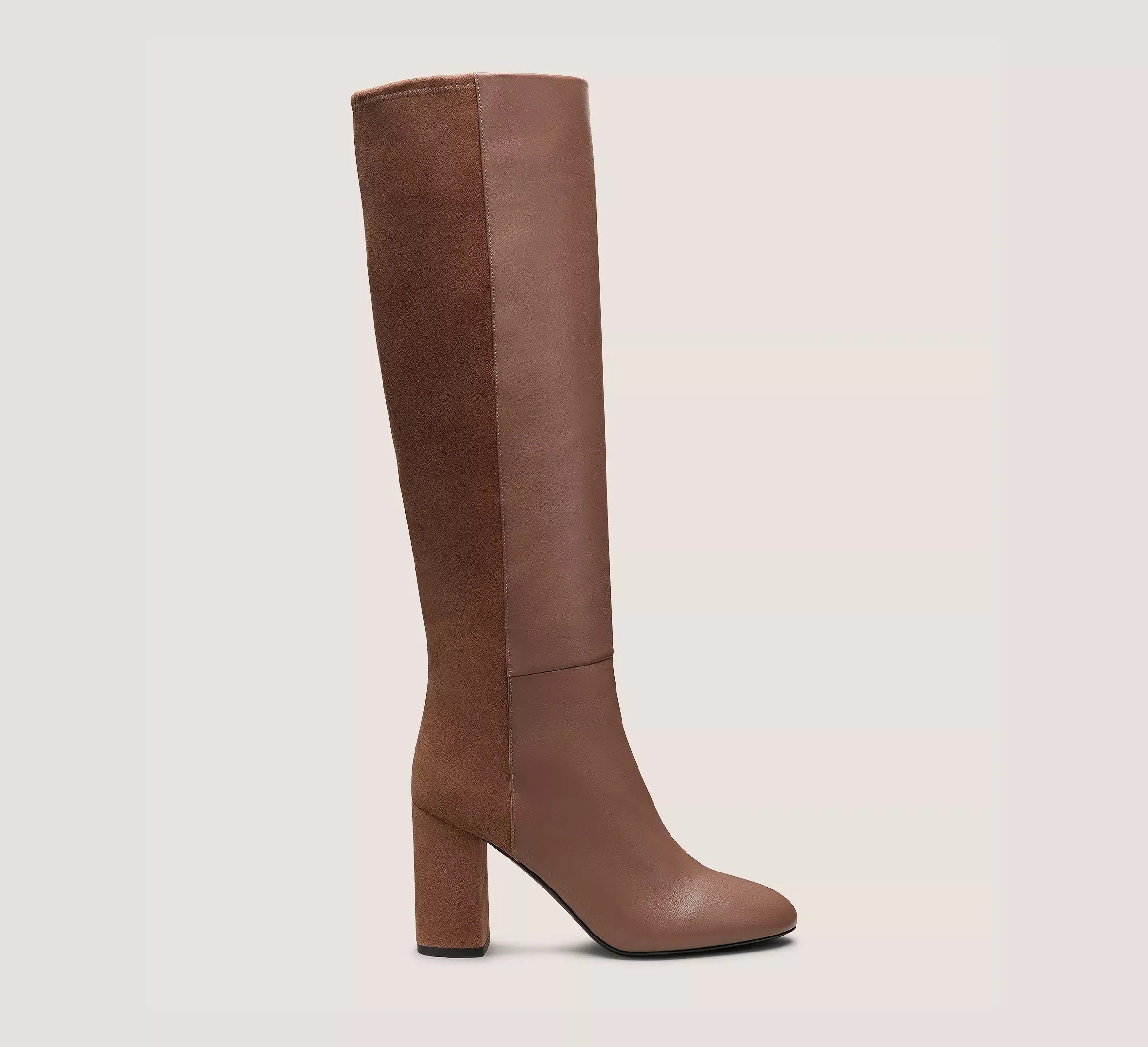EDITOR'S NOTES The 5050 STRUT BLOCK BOOT takes cues from our iconic 5050 mixed-material boot with its half-leather, half-suede design. Crafted by SW artisans in Spain, this knee-high boot is finished with an 85-mm block heel for a wearable lift that works with practically any outfit. PRODUCT DETAILS MEASUREMENTS Heel Height: 3.4", 85 mm Shaft Height: 15.8", 40 cm Shaft Circumference: 13.8", 35 cm All measurements are made on a size 6 shoe. There may be slight measurement variations based on size. FEATURES Boot Knee-high Block heel Almond toe Pull-on Mixed-material design Crafted by SW artisans in Spain Inspired by the 5050 boot Part of the iconic 5050 Collection MATERIALS Dress Nappa Leather & Suede Leather insole Rubber outsole MADE IN Spain