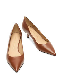 50mm Stuart Power leather pointed-toe pumps Highlights - Brown - Leather upper - Pointed toe - Kitten heel - Low-cut vamp - Classic silhouette Imported Composition Outer: Calf Leather 100% Sole: Calf Leather 100% Lining: Calf Leather 100% SIZE & FIT Measurement HEEL 1.96 in(5 cm)