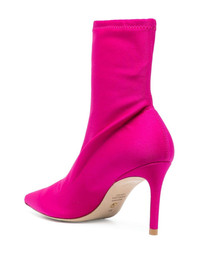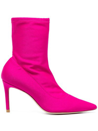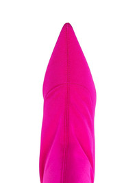 90mm sock-style boots magenta calf leather leather lining shimmer finish pointed toe sock-style ankle stretch-design high stiletto heel Imported Composition Outer: Satin 100% Lining: Leather 100% Sole: Leather 100% SIZE & FIT Measurement CIRCUMFERENCE 9.84 in(25 cm) HEEL 3.54 in(9 cm) HEIGHT 6.69 in(17 cm)