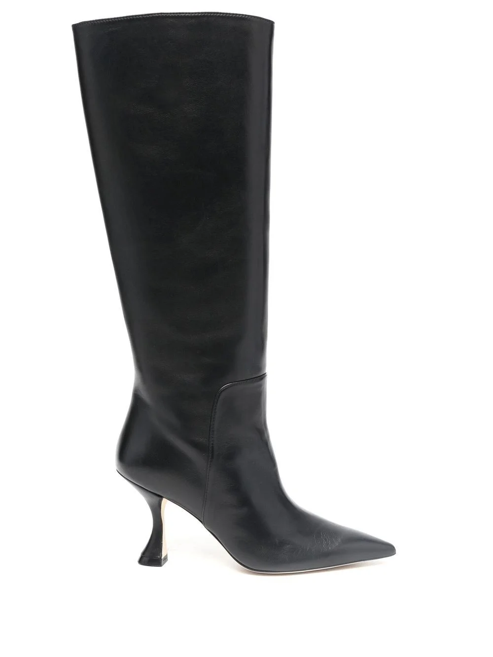 95mm pointed leather boots jet black calf leather pointed toe short side zip fastening 95mm high heel pull-on style Imported Composition Outer: Calf Leather 100% Lining: Calf Leather 100% Sole: Calf Leather 100% SIZE & FIT Measurement CIRCUMFERENCE 14.96 in(38 cm) HEEL 3.74 in(9.5 cm) HEIGHT 15.15 in(38.5 cm) Sole height 0.39 in(1 cm)