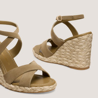 The ALYSSA WEDGE sandal, crafted by SW artisans in Spain, features crossover straps designed to elegantly frame the foot. It is set on a lightweight jute-wrapped wedge that offers a wearable 85-mm lift.MEASUREMENTS Heel Height: 3.4", 85 mm All measurements are made on a size 6 shoe. There may be slight measurement variations based on size. FEATURES Sandal Round toe Wedge Jute-wrapped wedge Adjustable ankle strap MATERIALS Snake-print leather Leather insole Rubber outsole MADE IN Spain