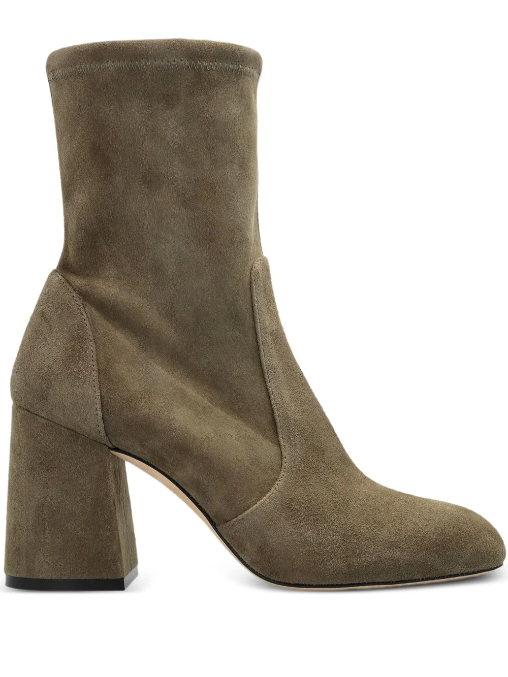 85mm Flareblock boots Highlights - Taupe brown - Almond toe - Branded leather insole - High block heel - Leather sole Imported Composition Outer: Goat Skin 100% Sole: Calf Suede 100% Lining: Calf Leather 100% SIZE & FIT Measurement HEEL 3.34 in(8.5 cm)