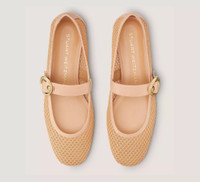 EDITOR'S NOTES The ARABELLA MARY JANE taps into the balletcore trend with an ultra-modern slant. Crafted by SW artisans in Spain from a lightweight mesh material featuring coordinating leather accents, this new iteration of the classic Mary Jane is finished with a vamp strap detailed with a rounded buckle accent. PRODUCT DETAILS MEASUREMENTS Heel Height: 0.6", 15 mm All measurements are made on a size 6 shoe. There may be slight measurement variations based on size. FEATURES Flat Flat block heel Round toe Buckle detail Adjustable vamp strap with elastic insert MATERIALS Mesh & Lacquered Nappa Leather Leather insole Leather outsole MADE IN SPAIN