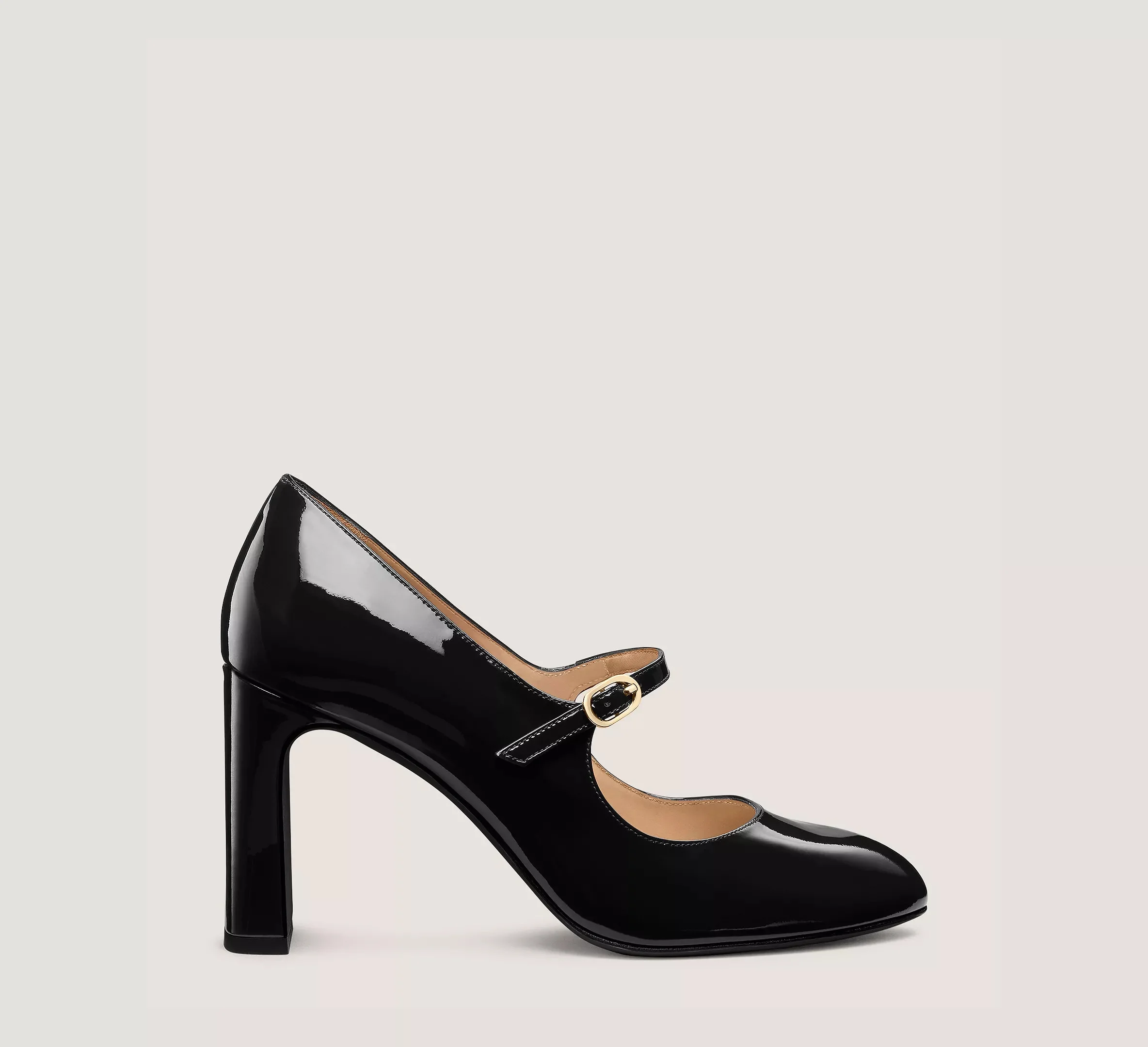 EDITOR'S NOTES The BABETTE MARY JANE 85 pairs the classic Mary Jane look with modern details. It features a distinctive sculpted slim block heel for an 85-mm lift and a sleek vamp strap finished with an adjustable buckle. PRODUCT DETAILS MEASUREMENTS Heel Height: 3.4", 85 mm All measurements are made on a size 6 shoe. There may be slight measurement variations based on size. FEATURES Pump Slim block heel Almond toe Mary Jane construction Adjustable vamp strap MATERIALS Patent leather Leather insole Leather outsole MADE IN Spain