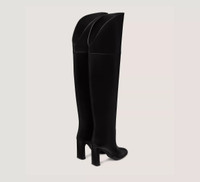 EDITOR'S NOTES The BABETTE OVER-THE-KNEE TUBO 85 features a sleek, modern sensibility, from its distinctive sculpted slim block heel to its structured silhouette. Its 85-mm heel offers a wearable lift that works from day to night. PRODUCT DETAILS MEASUREMENTS Heel Height: 3.4", 85 mm Shaft Height: 16.5", 42 cm Shaft Circumference: 14.6", 37 cm All measurements are made on a size 6 shoe. There may be slight measurement variations based on size. FEATURES Boot Over-the-knee Slim block heel Almond toe Pull-on Structured shaft MATERIALS Nappa Leather Leather insole Leather outsole MADE IN Spain