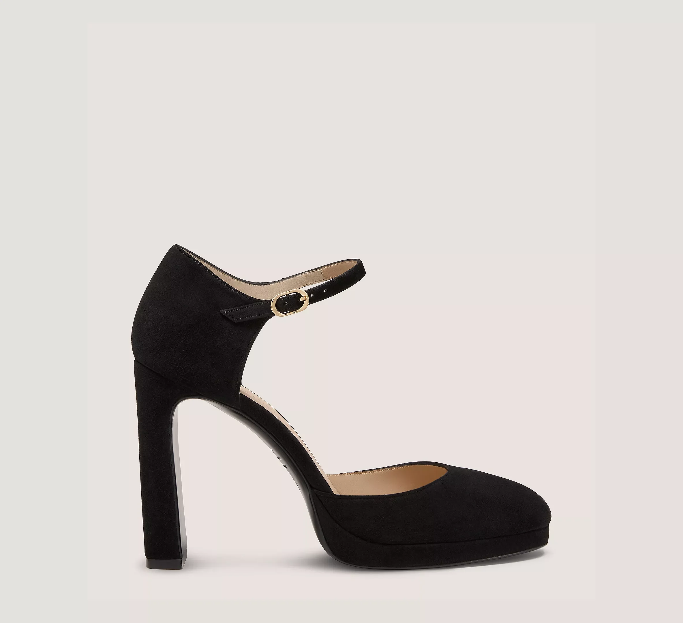 EDITOR'S NOTES The BABETTE PLATFORM PUMP is set on a sculpted, slim block heel that offers a 100-mm lift. It is crafted in Spain with a low-cut vamp design, a subtle platform and a sleek adjustable ankle strap. PRODUCT DETAILS MEASUREMENTS Heel Height: 3.9", 100 mm Platform Height: 0.6", 15 mm All measurements are made on a size 6 shoe. There may be slight measurement variations based on size. FEATURES Pump Slim block heel Almond toe Platform Adjustable vamp strap MATERIALS Suede Leather insole Rubber outsole