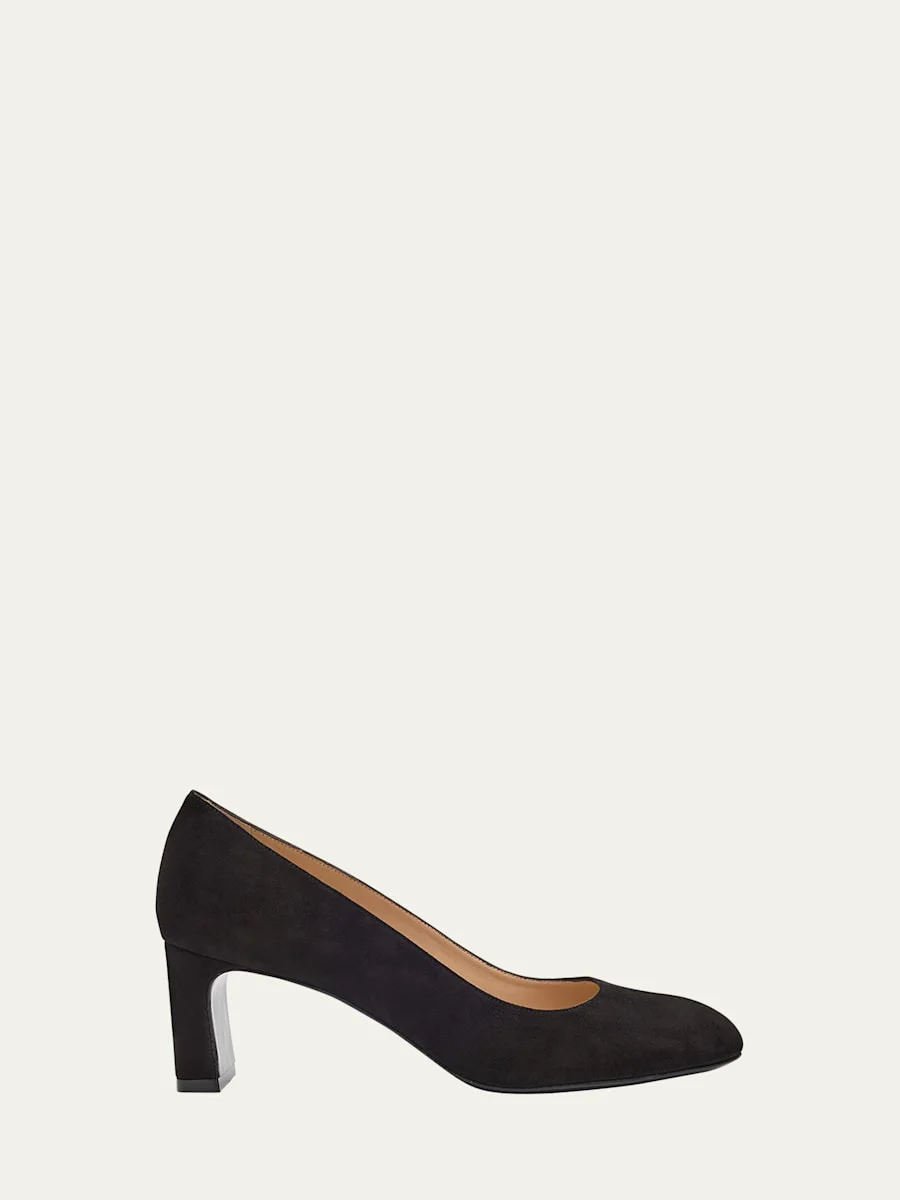 Stuart Weitzman "Babette" pumps in supple calf suede 2.36 in / 60 mm block heel Round toe Slip-on style Leather lining and outsole Professional cleaning recommended Made in Spain Online Inquiries: BGS21_X6ZGR| Store Inquiries: #5071215