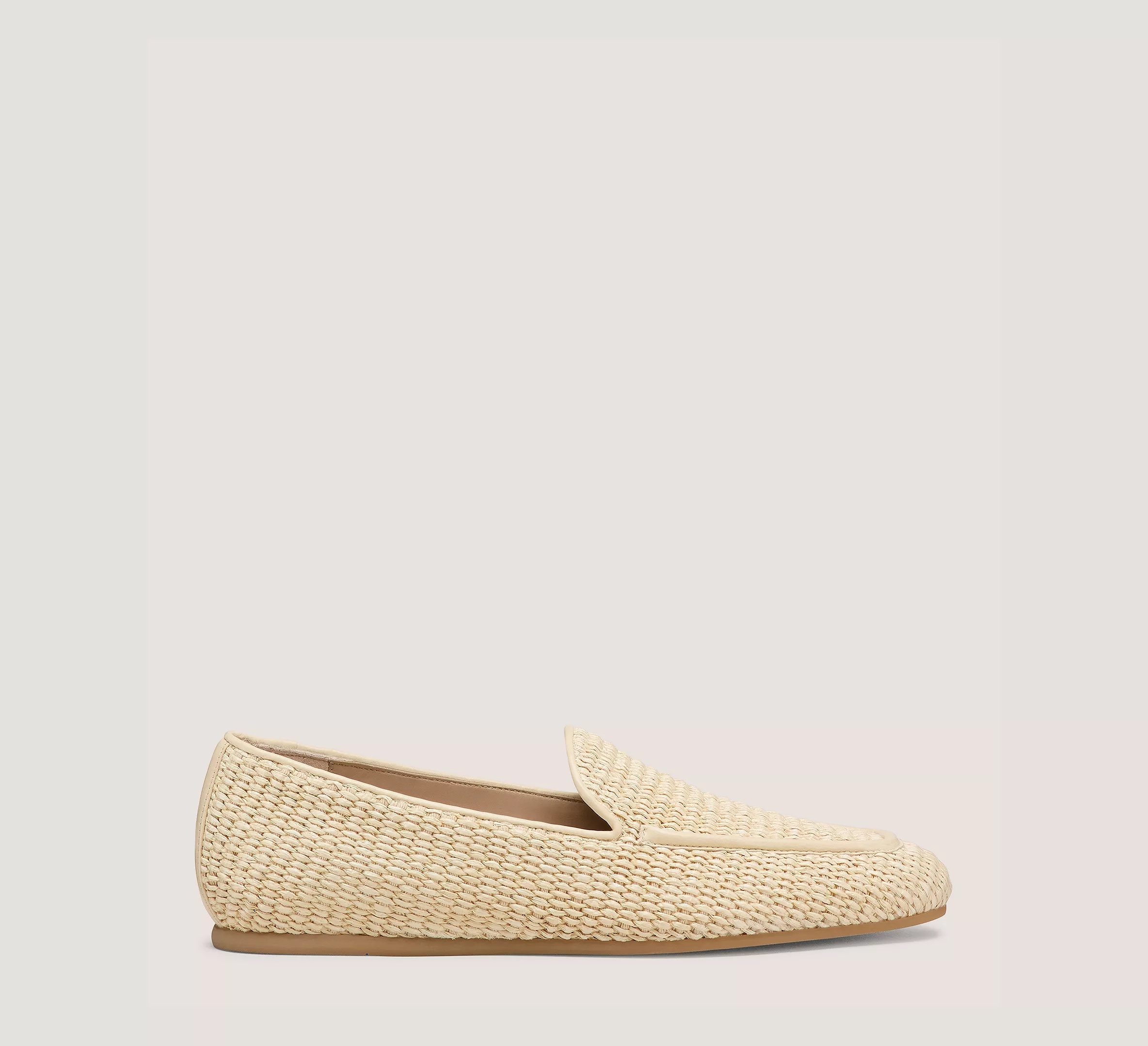 EDITOR'S NOTES The LEE LOAFER is destined to be a wardrobe staple. Crafted by SW artisans in Spain, this definitively wearable flat features a classic almond toe and a flat rubber sole for around-the-clock comfort. PRODUCT DETAILS MEASUREMENTS Heel Height: 0.2", 5 mm All measurements are made on a size 6 shoe. There may be slight measurement variations based on size. FEATURES Loafer Flat Almond toe Flat rubber sole MATERIALS New Basket Raffia & Lacquered Nappa Leather Leather insole Leather outsole MADE IN Spain