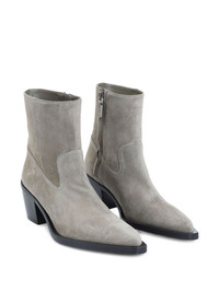 60mm suede pointed-toe heeled cowboy boots Highlights - Smoky taupe - Suede upper - Pointed toe - Block heel - Side zip fastening - Stitching detail Imported Composition Lining: Calf Leather 100% Sole: Calf Leather 100% Outer: Suede 100% SIZE & FIT Measurement HEEL 2.36 in(6 cm)