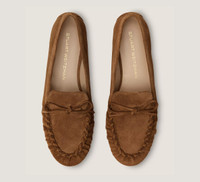 EDITOR'S NOTES The BRITT BOW LOAFER delivers our modern take on the classic driver silhouette. This timelessly streamlined design is made in Spain and features softly pinched details along the toe, a tonal bow accent and a flat block heel for wear-all-day comfort. PRODUCT DETAILS MEASUREMENTS Heel Height: 0.2", 5 mm All measurements are made on a size 6 shoe. There may be slight measurement variations based on size. FEATURES Loafer Almond toe Driver Bow detail MATERIALS Sport Suede Leather insole Rubber outsole MADE IN Spain