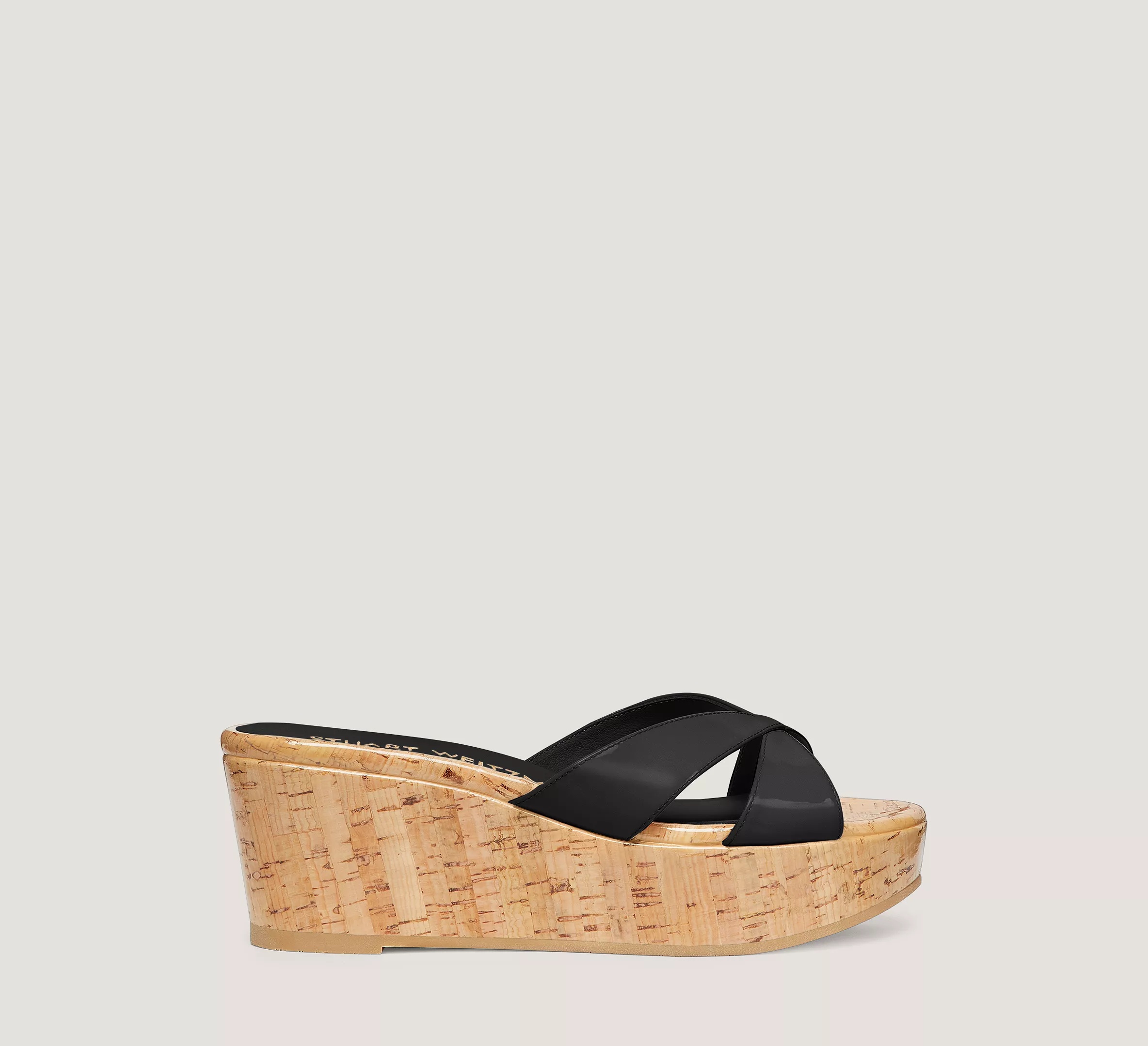 EDITOR'S NOTES The CARMEN MIDI PLATFORM SLIDE is set on a 75-mm cork wedge that offers a wearable lift while remaining lightweight and comfortable. With its sleek crossover straps, this sandal is designed to complement a range of warm-weather outfits. PRODUCT DETAILS MEASUREMENTS Heel Height: 2.4", 60 mm Platform Height: 1.2", 30 mm All measurements are made on a size 6 shoe. There may be slight measurement variations based on size. FEATURES Slide sandal Cork wedge Round toe MATERIALS Patent leather Leather insole Leather outsole MADE IN Spain