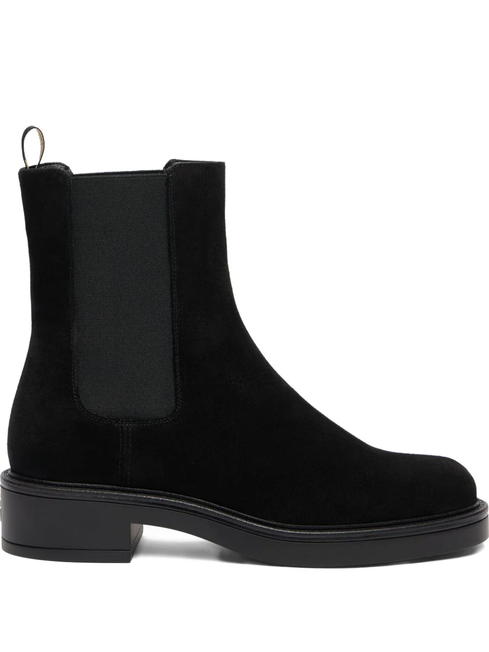 Celia chelsea boots Highlights - Black - Suede - Elastic side gussets - Pull tab - Round toe - Block heel Imported Composition Outer: Suede 100% Sole: Rubber 100% Lining: Fabric 100%