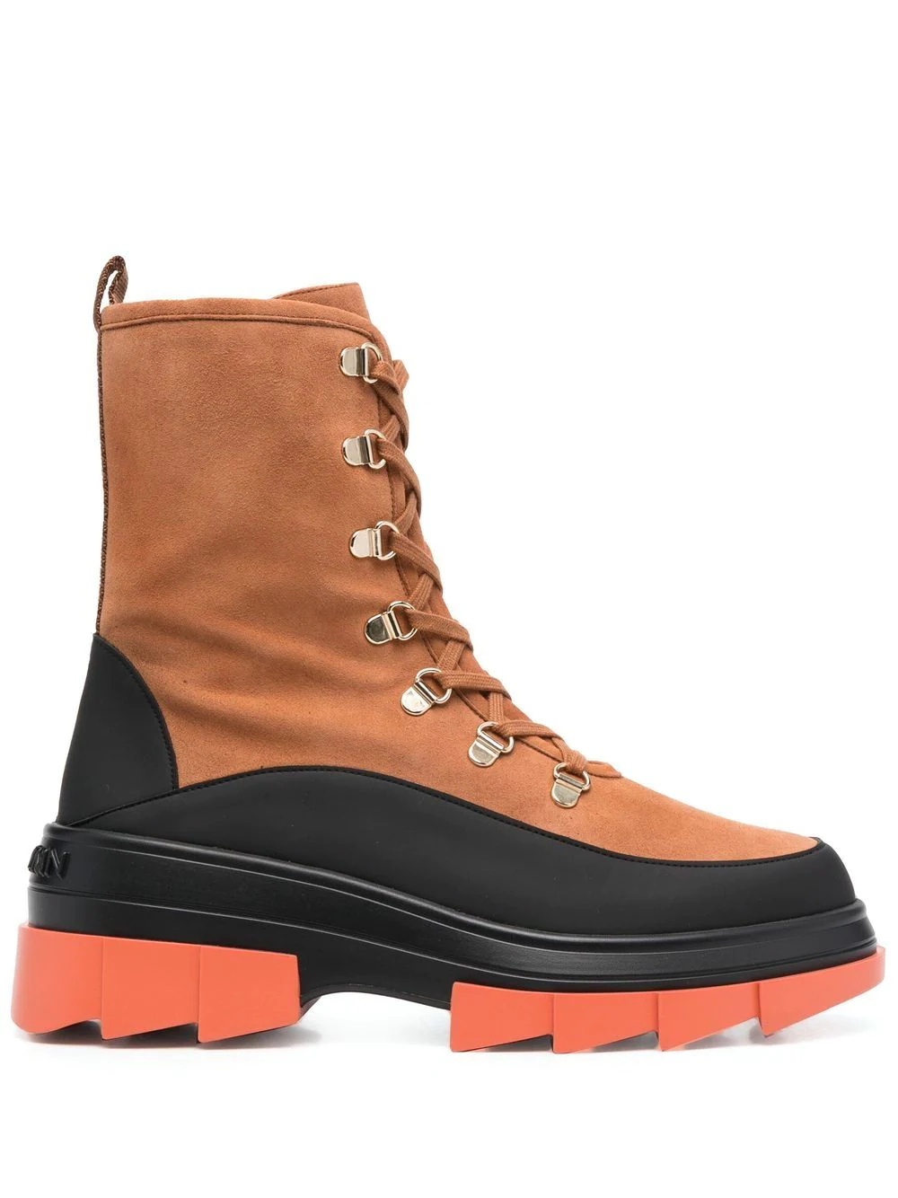 panelled lace-up chunky boots from STUART WEITZMAN featuring multicolour, calf leather, ankle-length, panelled design, front lace-up fastening, round toe and chunky rubber sole. Highlights - Multicolour - Calf leather - Ankle-length - Panelled design - Front lace-up fastening - Round toe - Chunky rubber sole Imported Composition lining: Calf Leather 100% sole: Rubber 100% outer: Calf Leather 100% Product measurements for size: 37 (EU) Heel: 5.5 cm (2.2 in) Height: 17 cm (6.7 in) Sole height: 2.5 cm (1 in)