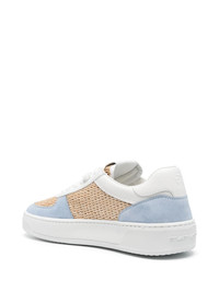 Courtside panelled raffia sneakers Highlights - Sky blue/sand beige/white - Woven raffia design - Suede panelling - Leather panelling - Panelled design - Embroidered logo to the side - Logo patch at the tongue - Debossed logo to the rear - Logo at the sole - Round toe - Front lace-up fastening - Branded leather insole - Flat rubber sole Made in Italy Composition Leather 100% SIZE & FIT Measurement HEEL 1.57 in(4 cm) Sole height 1.18 in(3 cm)