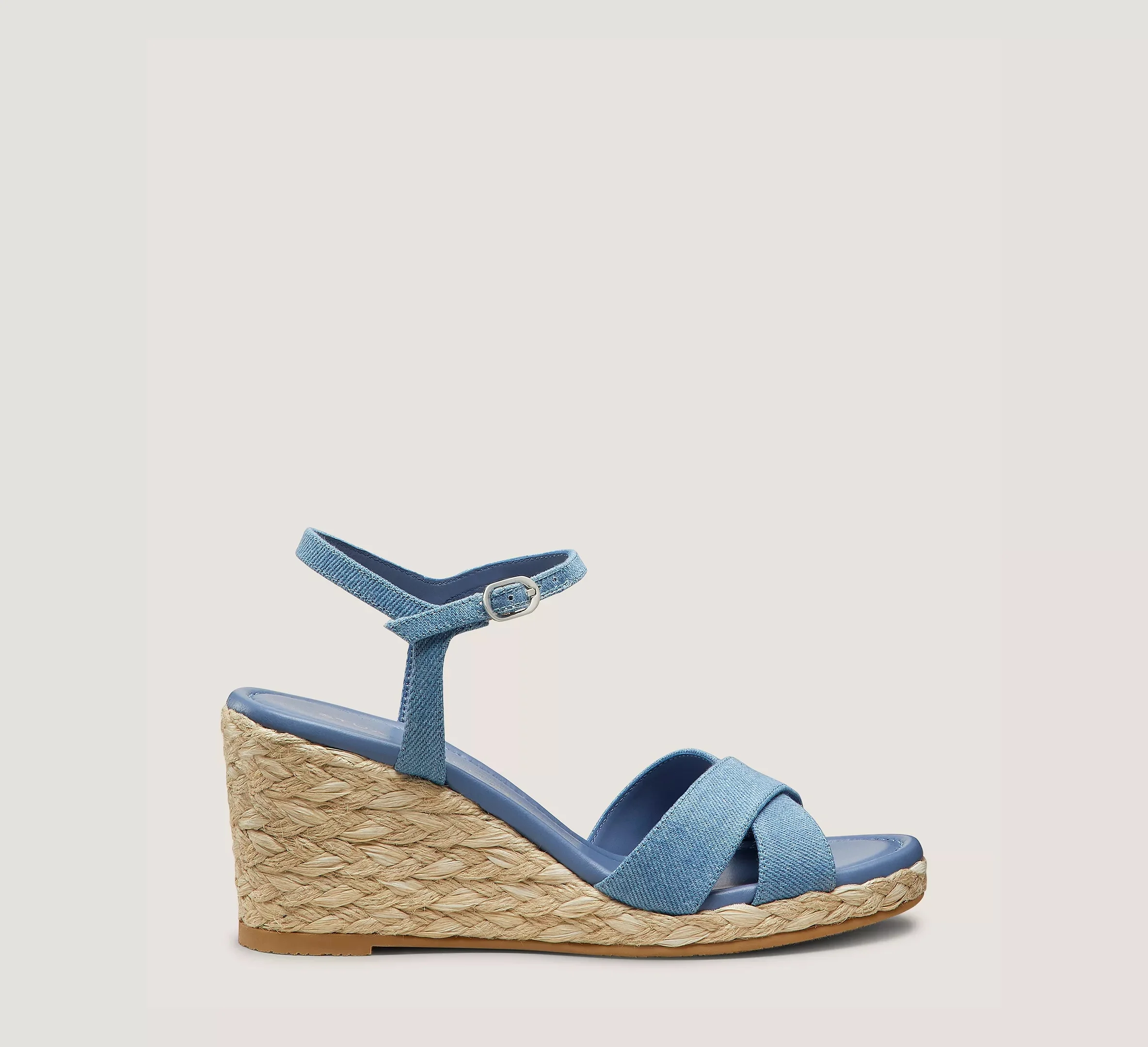 EDITOR'S NOTES The DAYNA ESPADRILLE WEDGE offers a new take on our customer-favorite DAYNA PLATFORM sandal. Featuring the same crossover strap design and sleek adjustable ankle strap, this vacation-ready update is set on a lightweight 65-mm wedge that's just as elevated as it is wearable. PRODUCT DETAILS MEASUREMENTS Heel Height: 3", 75 mm Platform Height: 0.4", 10 mm All measurements are made on a size 6 shoe. There may be slight measurement variations based on size. FEATURES Sandal Wedge Round toe Jute-wrapped wedge Adjustable ankle strap MATERIALS Vintage Denim & Jute Leather insole Leather outsole MADE IN Spain