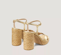 EDITOR'S NOTES The DAYNA PLATFORM SANDAL is ready for any occasion. Crafted by SW artisans in Spain, it is constructed with crossover straps that perfectly frame the foot, plus its substantial 110-mm block heel, paired with a platform, ensures even weight distribution for maximum comfort. PRODUCT DETAILS MEASUREMENTS Heel Height: 4.3", 110 mm Platform Height: 1", 25 mm All measurements are made on a size 6 shoe. There may be slight measurement variations based on size. FEATURES Sandal Block heel Round toe Platform Cutout details Adjustable ankle strap MATERIALS Vintage Denim & Braided Raffia Leather insole Leather outsole