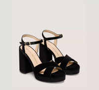 EDITOR'S NOTES Crafted by SW artisans in Spain, the DAYNA PLATFORM SANDAL is constructed with crossover straps that perfectly frame the foot. Its substantial 110-mm block heel is paired with a platform to ensure even weight distribution for maximum comfort. PRODUCT DETAILS MEASUREMENTS Heel Height: 4.3", 110 mm Platform Height: 1", 25 mm All measurements are made on a size 6 shoe. There may be slight measurement variations based on size. FEATURES Sandal Block heel Almond toe Platform Adjustable ankle strap MATERIALS Silk velvet Leather insole Rubber outsole MADE IN Spain