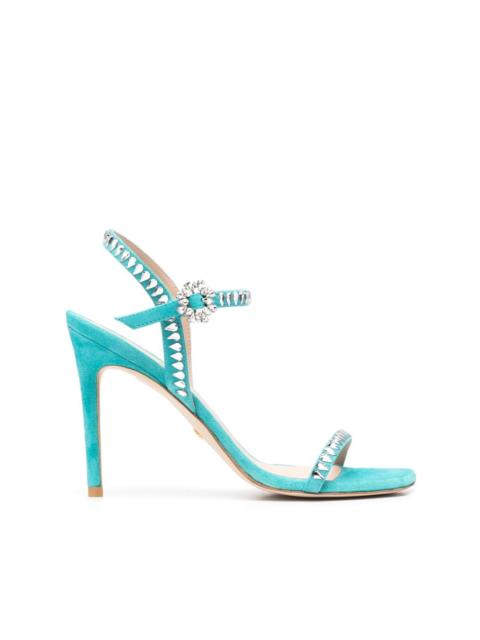 embellished open-toe sandals Stuart Weitzman elevates these stiletto sandals with embellishments for SS23. This Capri-blue-hued pair is rendered from calf suede and feature crystal accents along the straps. Imported Composition Outer: Calf Suede 100% Sole: Calf Leather 100% Lining: Calf Leather 100% SIZE & FIT Measurement HEEL 4.13 in(10.5 cm) Sole height 0.39 in(1 cm)