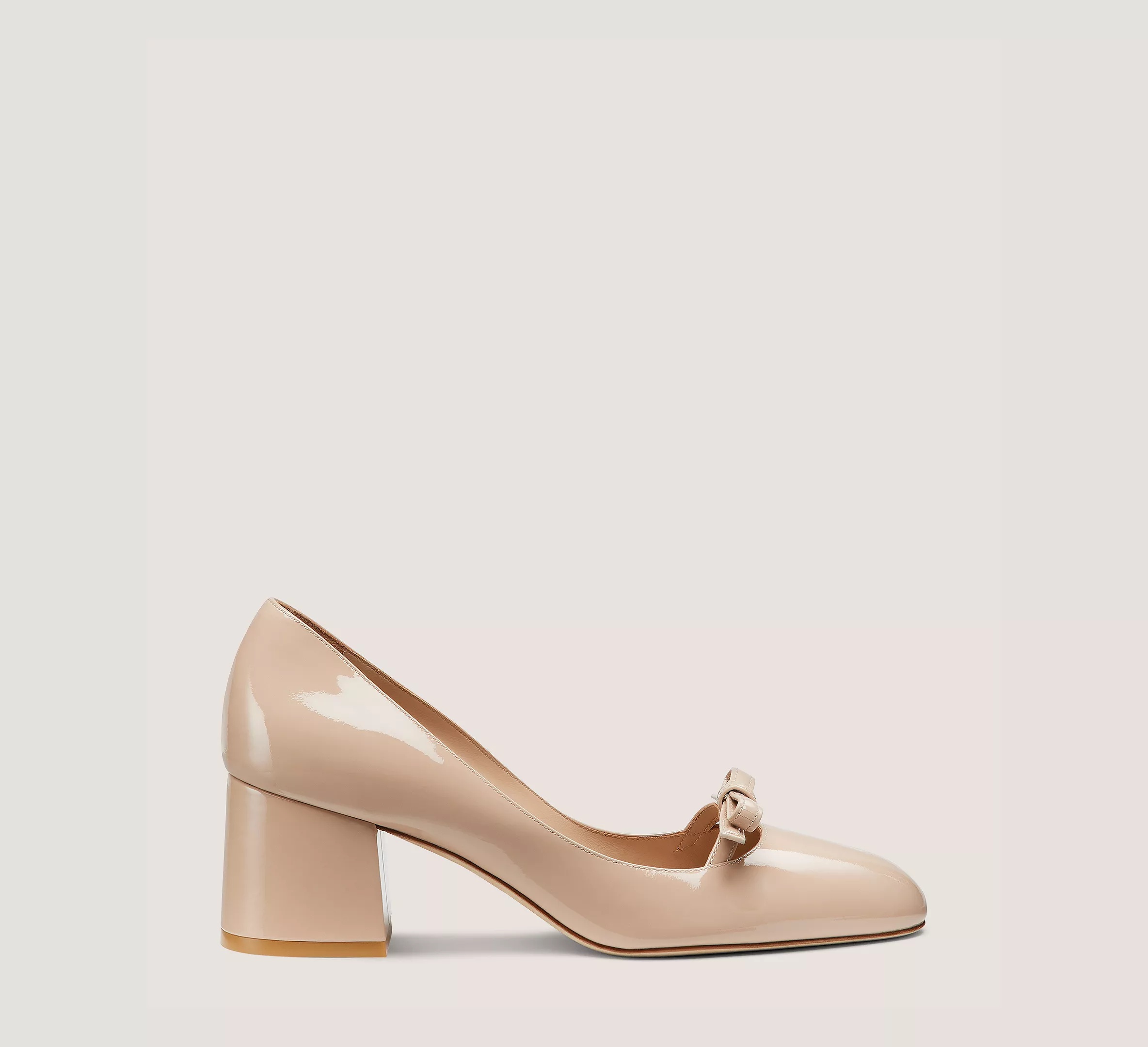 EDITOR'S NOTES The FELCITY BLOCK PUMP 60, adorned with a bow accent, embodies modern femininity. Crafted by SW artisans in Spain, it is set on a 60-mm flared block heel — a detail that offers a sculptural sensibility to the look as well as extra wear-all-day support. PRODUCT DETAILS MEASUREMENTS Heel Height: 2.4", 60 mm All measurements are made on a size 6 shoe. There may be slight measurement variations based on size. FEATURES Pump Flared block heel Round toe Bow detail MATERIALS Patent leather Leather insole Buffed leather outsole with SW embossed logo MADE IN Spain