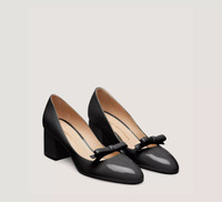 EDITOR'S NOTES The FELCITY BLOCK PUMP 60, adorned with a bow accent, embodies modern femininity. Crafted by SW artisans in Spain, it is set on a 60-mm flared block heel — a detail that offers a sculptural sensibility to the look as well as extra wear-all-day support. PRODUCT DETAILS MEASUREMENTS Heel Height: 2.4", 60 mm All measurements are made on a size 6 shoe. There may be slight measurement variations based on size. FEATURES Pump Flared block heel Round toe Bow detail MATERIALS Patent leather Leather insole Buffed leather outsole with SW embossed logo MADE IN Spain