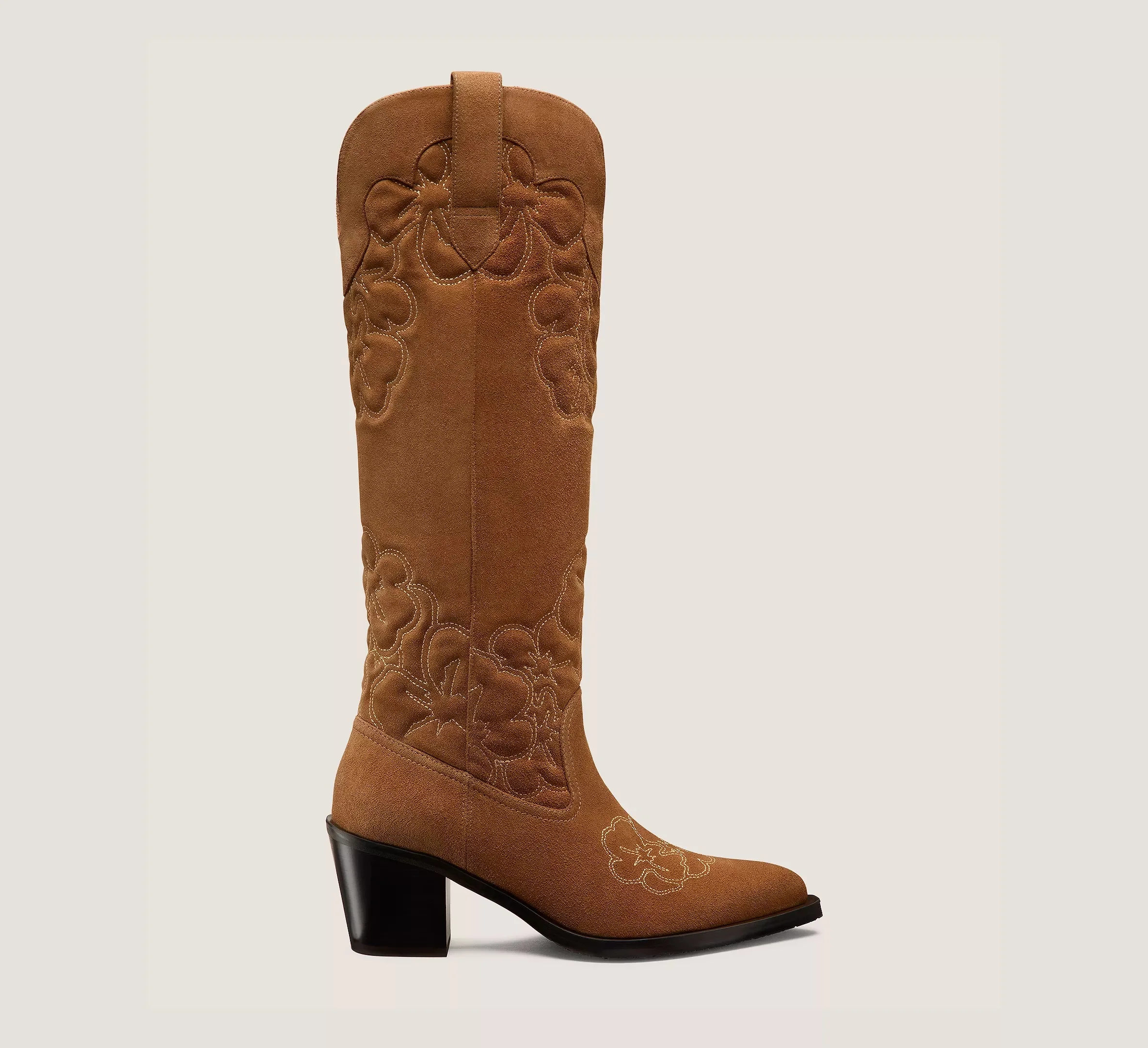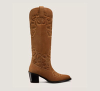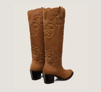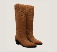 EDITOR'S NOTES The FELIX BOOT delivers our elevated take on the timeless Western-inspired boot. Featuring a modern, streamlined construction, this knee-high design is finished with pull straps, a sleek pointed toe and classic, wearable Cuban heel. PRODUCT DETAILS MEASUREMENTS Heel Height: 2.8", 70 mm Shaft Height: 15", 38 cm Shaft Circumference: 6.7", 17 cm All measurements are made on a size 6 shoe. There may be slight measurement variations based on size. FEATURES Boot Knee-high Block heel Pointed toe Pull-on Pull straps MATERIALS JASMINE STITCHED SPORT SUEDE/STACKED Leather insole Leather outsole MADE IN Spain