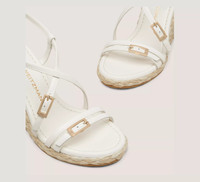 EDITOR'S NOTES The GEORGIE ESPADRILLE WEDGE features a timeless strappy design detailed with angular buckles for a touch of modern polish. Set on a lightweight 85-mm jute-wrapped wedge, it delivers effortless elegance around the clock. PRODUCT DETAILS MEASUREMENTS Heel Height: 3.4", 85 mm All measurements are made on a size 6 shoe. There may be slight measurement variations based on size. FEATURES Sandal Wedge Round toe Buckle accents Jute-wrapped wedge Adjustable vamp strap Adjustable ankle strap MATERIALS Smooth Leather & Jute Leather insole Leather outsole MADE IN Spain