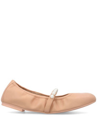 Goldie ballerina shoes Stuart Weitzman's Goldie flats are undeniably inspired by the leathered and slouchy silhouette of ballet shoes. The pair also incorporates the style's traditional strap, which is embellished with the brand's signature row of pearls. Highlights - Blush beige - Leather - Strap detailing - Pearl detail - Round toe - Slip-on style - Low heel - Flat rubber sole Imported Composition Leather 100%
