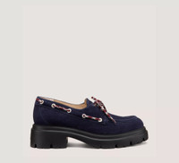EDITOR'S NOTES The HUDSON MOCCASIN reimagines the fashion-favorite boat shoe with an unexpected twist. Pairing the classic moccasin silhouette with a platform lug sole, it makes a statement all its own. A 40-mm block heel offers a wearable lift. PRODUCT DETAILS MEASUREMENTS Heel Height: 1.6", 40 mm All measurements are made on a size 6 shoe. There may be slight measurement variations based on size. FEATURES Flat Flat block heel Round toe Tie detail Metallic eyelets Lug sole MATERIALS Sport Suede Leather insole Rubber outsole MADE IN Spain