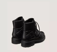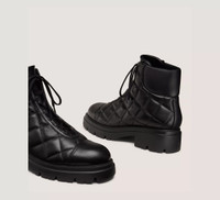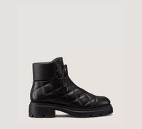 EDITOR'S NOTES The HUDSON QUILTED HIKER BOOTIE is crafted with a quilted upper that creates a stylish juxtaposition against its rugged silhouette. This made-in-Spain lace-up boot rests on a lug sole complete with a 20-mm block heel for an extra lift. PRODUCT DETAILS MEASUREMENTS Heel Height: 2", 50 mm Shaft Height: 4.7", 12 cm Shaft Circumference: 10.2", 26 cm All measurements are made on a size 6 shoe. There may be slight measurement variations based on size. FEATURES Bootie Ankle Flat block heel Round toe Lace-up Quilted upper Lug sole MATERIALS Quilted Nappa Leather Leather insole Rubber outsole MADE IN Spain