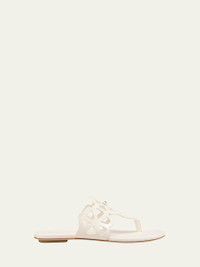 Stuart Weitzman "Jasmine" patent leather sandals with floralinspired cutout detailing and a pearly stud logo medallion accent 0.17 in / 5 mm flat heel Thong strap Caged, Tstrap vamp Slide style Leather outsole Lining: Leather Spot clean, hand wash Imported