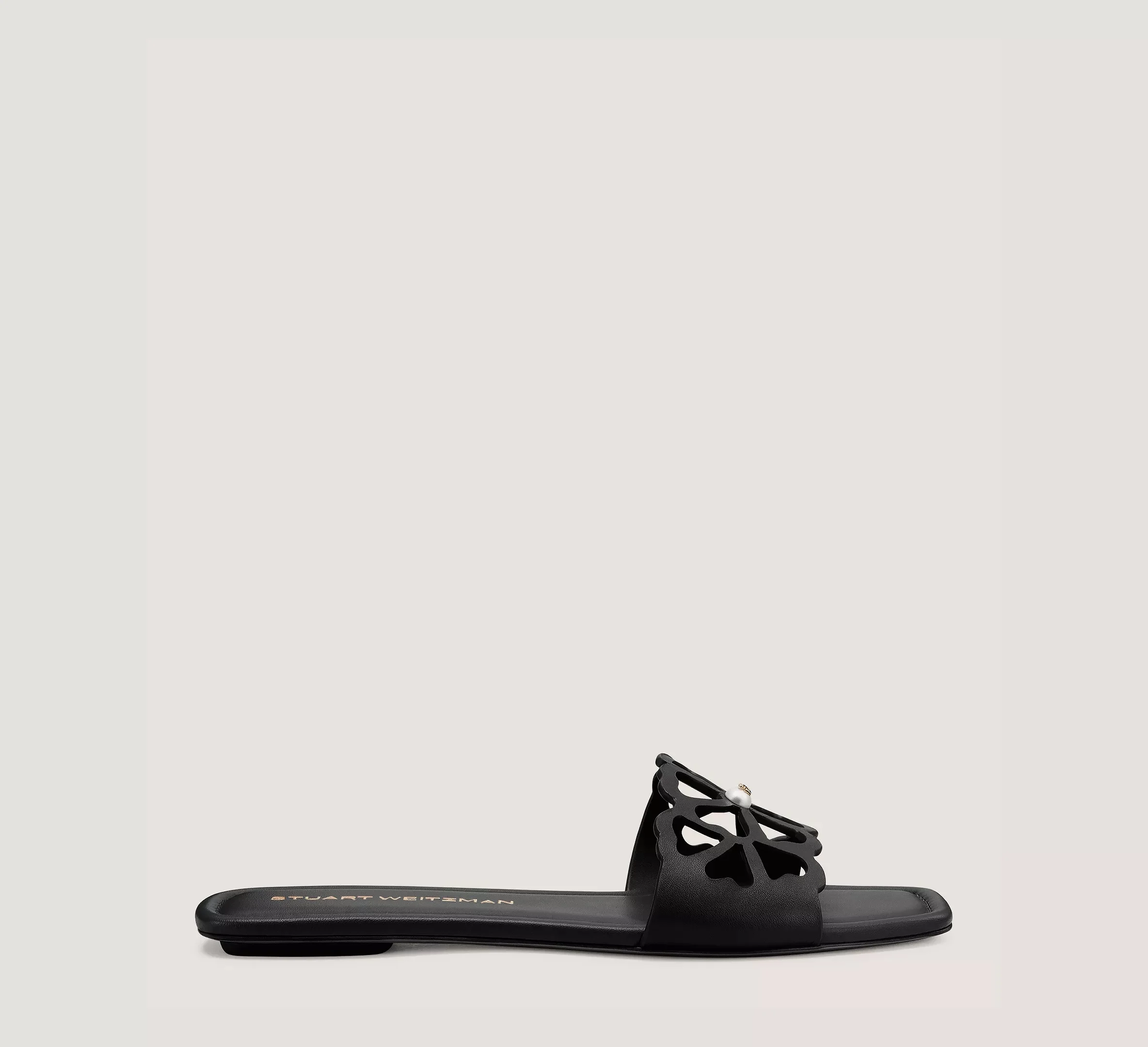 EDITOR'S NOTES The JASMINE SLIDE delivers our refined take on the everyday flat sandal. Defined by an elegant floral cutout motif complete with a pearl detail, this square-toe slide makes an elevated addition to any warm-weather wardrobe. PRODUCT DETAILS MEASUREMENTS Heel Height: 0.2", 5 mm All measurements are made on a size 6 shoe. There may be slight measurement variations based on size. FEATURES Slide Square toe Floral cutout design Pearl embellishment MATERIALS Smooth Leather Leather insole Leather outsole Imported