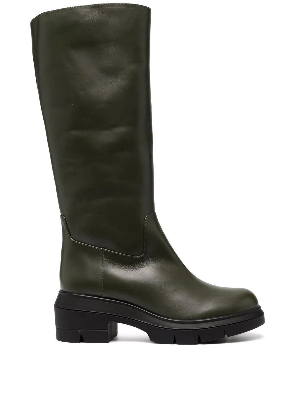 knee-length leather boots Highlights - Green - Leather - Panelled design - Round toe - Short side zip fastening - Knee-length - Chunky rubber sole Imported Composition Leather 100% SIZE & FIT Measurement CIRCUMFERENCE 16.53 in(42 cm) HEEL 2.75 in(7 cm) HEIGHT 15.15 in(38.5 cm) Sole height 1.37 in(3.5 cm)