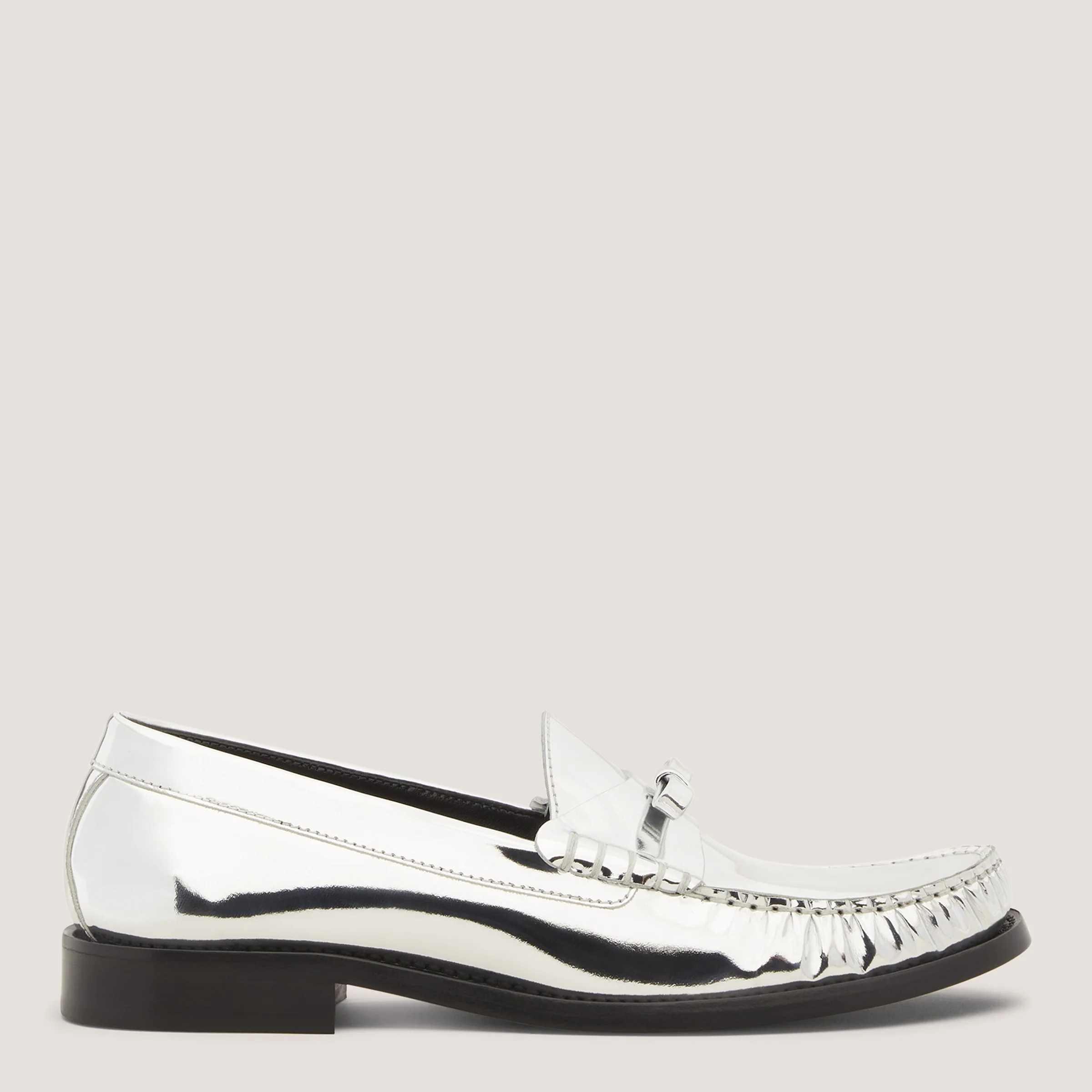EDITOR'S NOTES The LOTTIE BOW LOAFER is decorated with a dainty bow accent and crafted by SW artisans in Spain on a flat block heel for wear-all-day style and comfort. PRODUCT DETAILS MEASUREMENTS Heel Height: 0.8", 20 mm All measurements are made on a size 6 shoe. There may be slight measurement variations based on size. FEATURES Loafer Flat block heel Round toe Bow detail MATERIALS Specchio leather Leather insole Rubber outsole MADE IN Spain