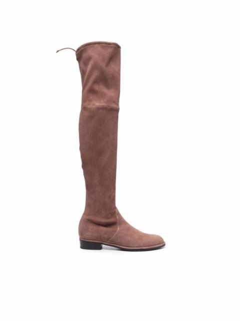 Lowland thigh-length boots Lowland thigh-length boots from STUART WEITZMAN featuring tan brown, rear tie fastening, round toe, thigh-length, low block heel and calf suede. Imported Composition Outer: Calf Suede 100% Sole: Rubber 100% Lining: Fabric 100% SIZE & FIT Measurement HEEL 1.18 in(3 cm) HEIGHT 23.62 in(60 cm)
