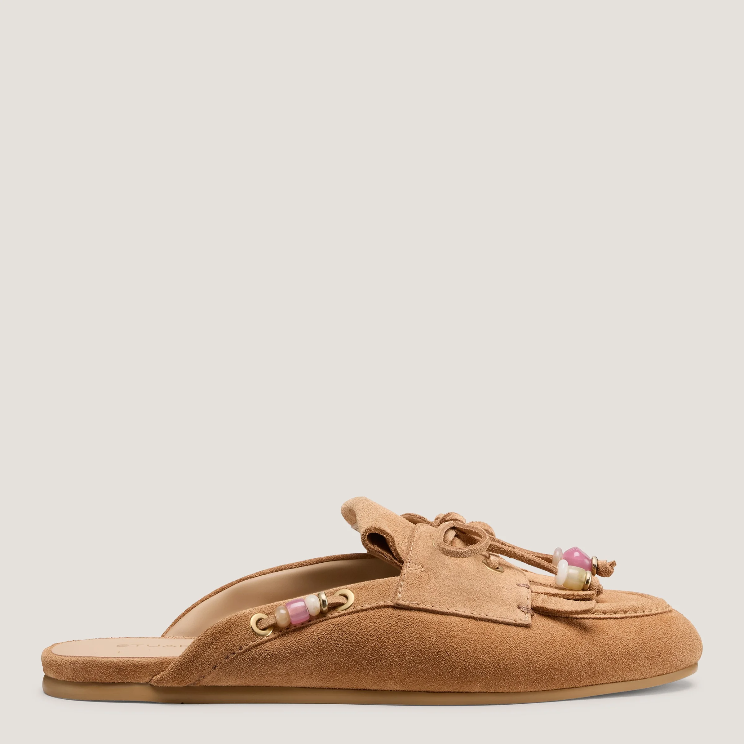 The MAJORCA TINSLEY MULE riffs on classic kiltie loafer styles with an artisanal twist. This moccasin-inspired design is made in Spain, defined by colorful bead embellishments and finished with a bow detail and fringe accent. MEASUREMENTS Heel Height: 0.2", 5 mm All measurements are made on a size 6 shoe. There may be slight measurement variations based on size. FEATURES Mule Round toe Moccasin-inspired Colorful bead accents Bow detail Fringe details Metallic eyelets MATERIALS Sport suede Leather insole Rubber outsole MADE IN Spain