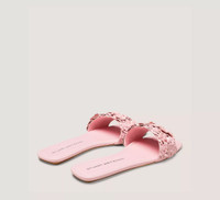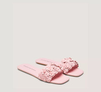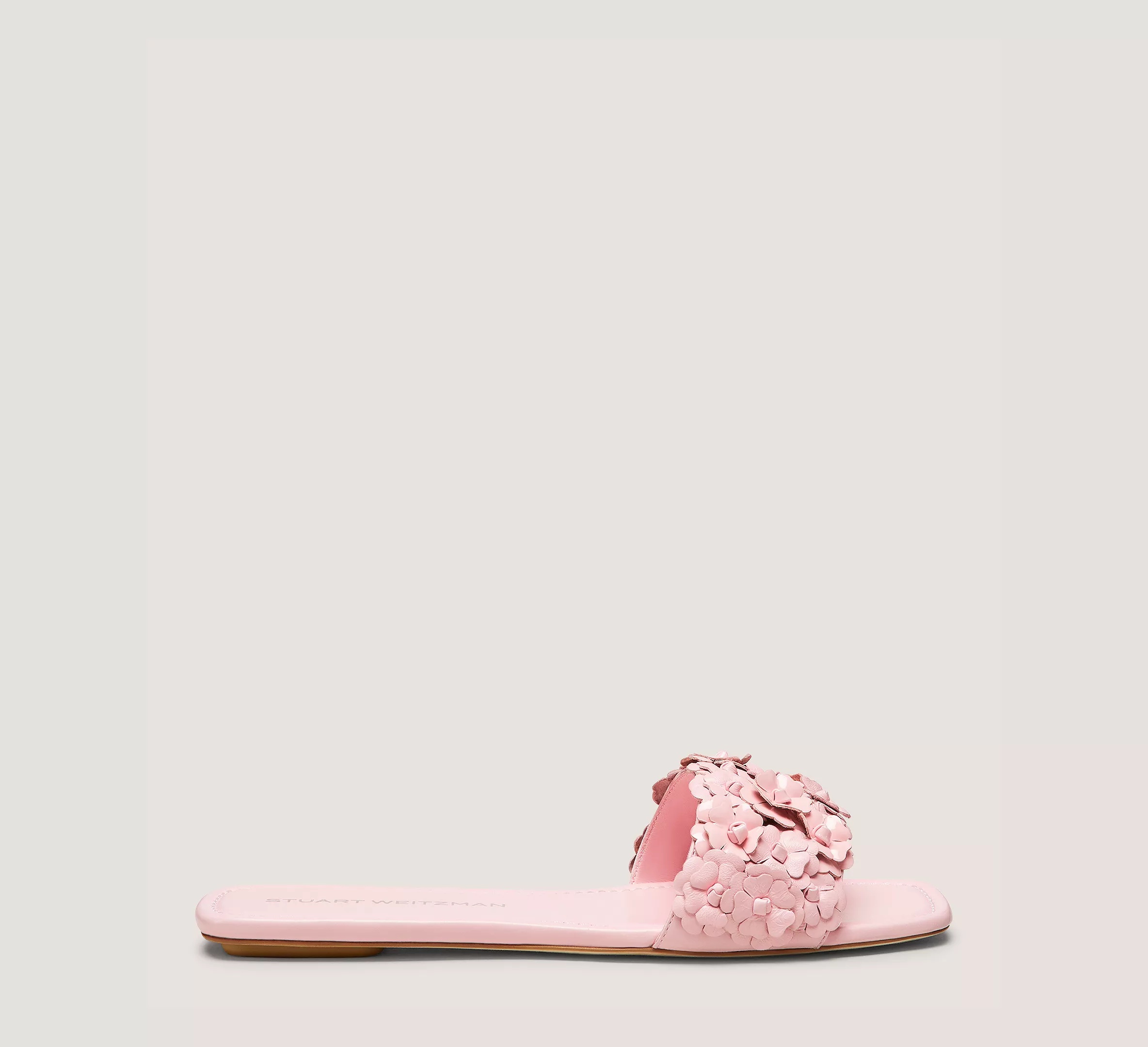 EDITOR'S NOTES The MEADOW SLIDE, distinguished by clusters of floral embellishments, is at once striking and wearable. Featuring a modern square toe, this made-in-Spain design delivers an elevated take on the everyday flat sandal — without sacrificing comfort. PRODUCT DETAILS MEASUREMENTS Heel Height: 0.2", 5 mm All measurements are made on a size 6 shoe. There may be slight measurement variations based on size. FEATURES Sandal Flat block heel Square toe Slide Floral embellishments MATERIALS Nappa leather & patent Leather insole Leather outsole MADE IN Spain