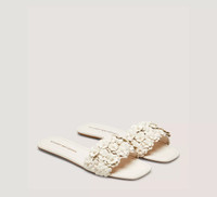 EDITOR'S NOTES The MEADOW SLIDE, distinguished by clusters of floral embellishments, is at once striking and wearable. Featuring a modern square toe, this made-in-Spain design delivers an elevated take on the everyday flat sandal — without sacrificing comfort. PRODUCT DETAILS MEASUREMENTS Heel Height: 0.2", 5 mm All measurements are made on a size 6 shoe. There may be slight measurement variations based on size. FEATURES Sandal Flat block heel Square toe Slide Floral embellishments MATERIALS Nappa leather & patent Leather insole Leather outsole MADE IN Spain