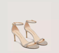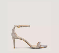 EDITOR'S NOTES The latest innovation of our iconic NUDIST is here. The NUDIST II SANDAL 75, crafted with updated features, is our lightest sandal to date. It is set on a reconstructed lightweight 75-mm stiletto heel and designed with a new arched, higher-coverage toe strap, a modernized round toe and a curved back counter that exposes even more of the foot. For even more comfort, it is finished with our new cushioned insole which has been updated with a slim, almost-invisible padding for additional comfort. This style is part of our iconic NUDIST Collection, a range of silhouettes defined by a minimalist sensibility, minimal coverage, keyhole details and a double-strap design. PRODUCT DETAILS MEASUREMENTS Heel Height: 3", 75 mm All measurements are made on a size 6 shoe. There may be slight measurement variations based on size. FEATURES Sandal Stiletto heel Round toe Signature keyhole detail Cushioned insole Adjustable ankle strap Crafted by SW artisans in Spain A Stuart Weitzman icon Part of the iconic NUDIST Collection MATERIALS New Noir Leather insole Leather outsole MADE IN Spain