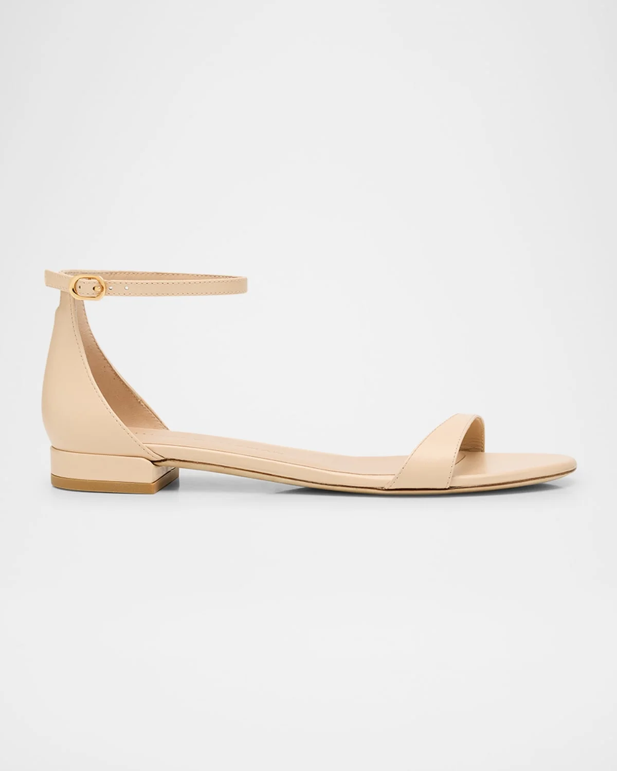 - Stuart Weitzman "Nudist" leather sandals - 0.50 in / 15 mm flat heel - Open toe - Adjustable ankle strap - Leather outsole - Lining: Leather - Made in Spain