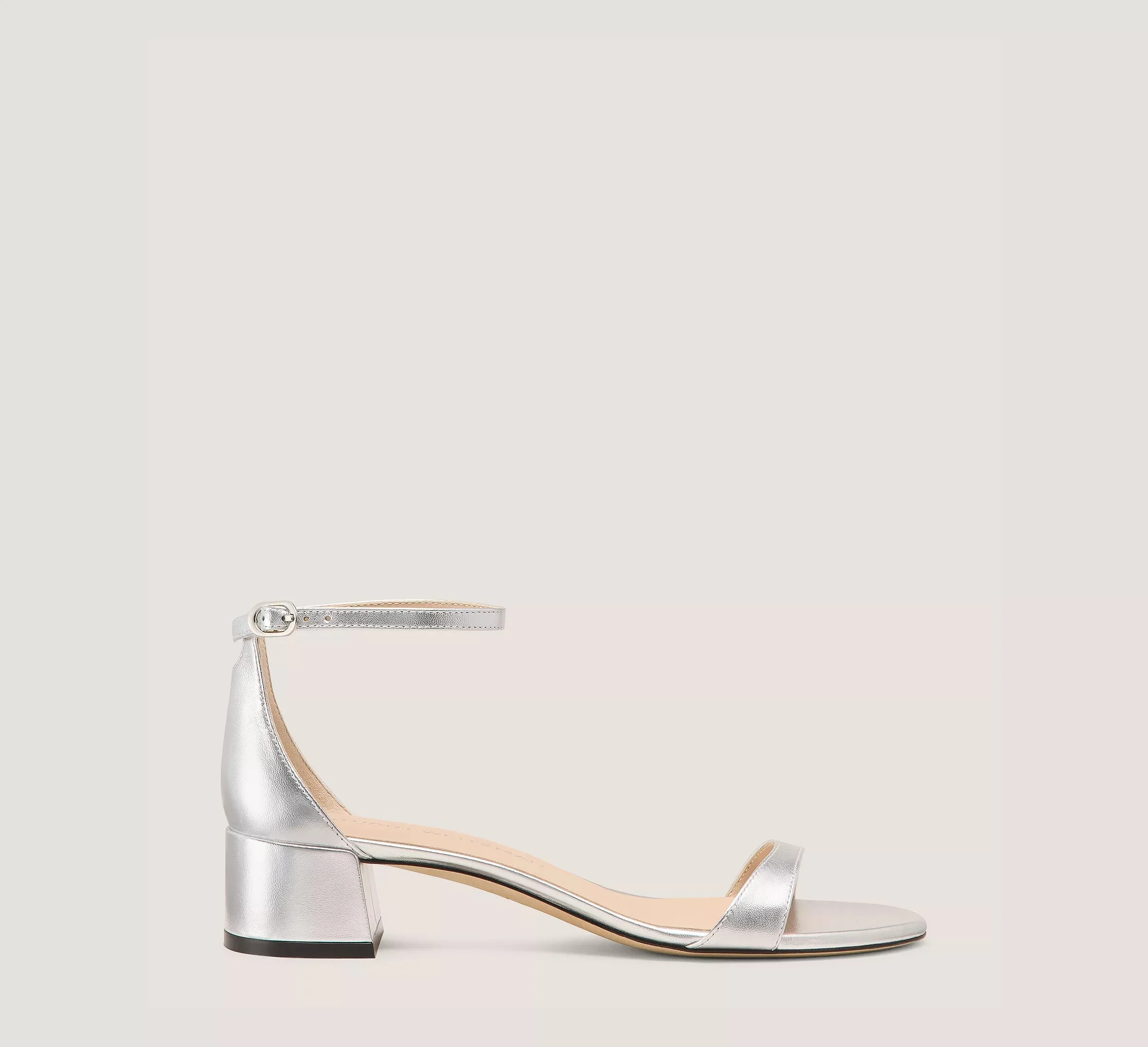 EDITOR'S NOTES The NUDIST BLOCK 35 sandal features our innovated NUDIST construction designed for even more style and comfort. Crafted by SW artisans in Spain with an arched, higher-coverage toe strap and a sleek round toe, it is finished with a wearable 35-mm block heel. PRODUCT DETAILS MEASUREMENTS Heel Height: 1.4", 35 mm All measurements are made on a size 6 shoe. There may be slight measurement variations based on size. FEATURES Sandal Block heel Round toe Signature keyhole detail Cushioned insole Adjustable ankle strap Crafted by SW artisans in Spain A Stuart Weitzman icon Part of the iconic NUDIST Collection MATERIALS Liquid Metallic Leather Leather insole Leather outsole MADE IN Spain