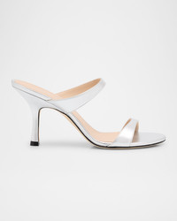 - Stuart Weitzman "Nudist" metallic leather sandals - 3.25 in / 85 mm stiletto heel - Open toe - Dual band upper - Slide style - Leather outsole - Lining: Leather - Professional cleaning recommended - Made in Spain