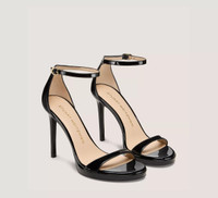 EDITOR'S NOTES The NUDIST PLATFORM delivers a bold update on our iconic NUDIST sandal. It features our innovated NUDIST construction developed for even more comfort than ever before, including: an arched, higher-coverage toe strap; a curved back counter that reveals more of the foot; and a modernized round toe. Crafted by SW artisans in Spain, this platform sandal is set on a lightweight 100-mm stiletto heel and finished with a cushioned insole. The result is a red carpet-ready design that is just as sophisticated as it is wearable. PRODUCT DETAILS MEASUREMENTS Heel Height: 3.9", 100 mm Platform Height: 0.6", 15 mm All measurements are made on a size 6 shoe. There may be slight measurement variations based on size. FEATURES Sandal Stiletto heel Round toe Platform Signature keyhole detail Cushioned insole Adjustable ankle strap Crafted by SW artisans in Spain A Stuart Weitzman icon Part of the iconic NUDIST Collection MATERIALS Patent leather Leather insole Leather outsole MADE IN Spain